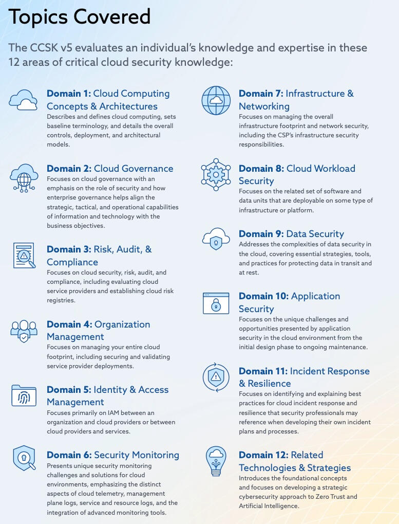 All domains of the Cloud Security Alliance CCSK Study Guide, version 5.